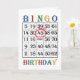 45th Birthday card. Say Happy Birthday to a bingo player with a bingo card. The age is circled in red. A bingo crazy player will get a huge kick out of this card! Copyright Norma Cornes.