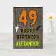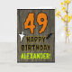 A frente deste design de cartão de saudação temático de aniversário assustador e assustador do Hallowe apresenta um grande número "49". Também apresenta a mensagem "FELIZ ANIVERSÁRIO", além de um nome personalizável. Há também representações de um morcego e de um fantasma na frente. O dentro apresenta uma mensagem de saudação de aniversário personalizável, ou talvez possa ser apagado e deixado o vazio se uma mensagem for escrita manualmente. Um cartão de aniversário personalizado como este pode ser uma maneira divertida de reconhecer o quarenta e nono aniversário de alguém que também cai no Halloween (31 de outubro). [~Z0000410]