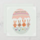 Paaskaart met gezellige illustratie van 4 paashaasjes aan tafel. Op de tafel eierdopjes met daarin een eitje. Tektst "happy easter" verder op achterkant een persoonlijke wens. De tekst kan aangepast worden.
