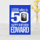 Cartão 50º aniversário feliz foto azul branca
