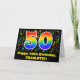 Este divertido, emocionante e colorido design de cartão de cumprimentos temático de aniversário apresenta um grande número "50" com um padrão de gradiente de espectro de arco-íris. Também apresenta a mensagem "Feliz 50º Aniversário," e um nome de destinatário editável. A frente também apresenta notas musicais coloridas e um padrão de símbolos. O interior apresenta uma mensagem de aniversário editável ou talvez possa ser limpo e deixado em branco se uma mensagem for escrita à mão. Um cartão de aniversário editável como este pode ser uma maneira divertida de enviar uma mensagem de aniversário para um músico, um cantor, um compositor musical ou outra pessoa que esteja celebrando seu aniversário de cinquenta anos.