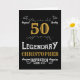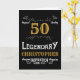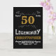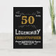 Um cartão de aniversário clássico personalizado para aquela comemoração de aniversário para alguém fazendo 50 anos. Adicione o nome a este design preto, branco e dourado estilo retrorreflector vintage para um presente de 50 anos personalizado. Edite facilmente o dentro de nome e mensagem com o modelo fornecido. Um maravilhoso presente de aniversário preto. Mais presentes e suprimentos de festas para a cinquenta comemoração disponível no design "Legendário" da loja.