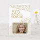 50 e Fabulosa Carta de Aniversário de Foto Dourada Glitter 50. Cartão de aniversário moderno com tipografia de moda e pontos falsos de ouro. O design tem uma foto e um nome personalizados. Você pode alterar ou apagar o dentro de texto. Faça um cartão de aniversário de 50 anos personalizado para ela.