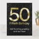 Cartão 50th Aniversário, encanto Dourado preto elegante