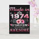 Cartão 52th Birthday Made In 1974 52 Years Of Being Aweso