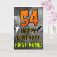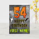 A frente deste design de cartões de aniversário temático do Dia das Bruxas assustador e assustador apresenta um grande número "54". Também apresenta a mensagem "FELIZ ANIVERSÁRIO", além de um nome personalizável. Há também representações de um fantasma e um morcego na frente. O dentro apresenta uma mensagem de saudação de aniversário personalizável, ou talvez possa ser apagado e deixado o vazio se uma mensagem for escrita manualmente. Um cartão de aniversário personalizável como este pode ser uma maneira divertida de reconhecer o cinquenta e quarto aniversário de alguém que também cai no dia 31 de outubro (Halloween). [~Z0000547]
