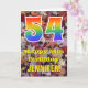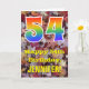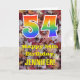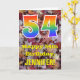 A frente deste design de cartões coloridos, rústicos e com tema de outono apresenta um grande número de "54" com um padrão inspirado no espectro do arco-íris. Também apresenta a mensagem "Feliz 54º aniversário", e um nome personalizado. O fundo da frente do cartão apresenta um padrão rústico de folhas de outono. O dentro apresenta uma mensagem de saudação de aniversário editável, ou talvez pudesse ser apagado e deixado o vazio se uma mensagem fosse escrita manualmente. Um cartão de aniversário personalizável como este pode ser uma maneira divertida de enviar uma mensagem em comemoração dos cinquenta e quatro anos de alguém. [~Z0000384]