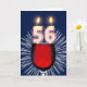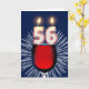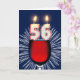 Um copo de vinho de aniversário com velas. As velas são compostas pelo número 56, por 56 anos. Os fogos de artifício estão a explodir ao fundo. Um cartão de aniversário adequado para qualquer pessoa, homem ou mulher.
