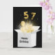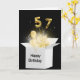 Balões Dourados e feixes de luz cintilantes brilham em uma caixa branca sobre fundo preto no 57º aniversário