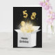 Balões Dourados e feixes de luz cintilantes brilham em uma caixa branca sobre fundo preto no 58º aniversário