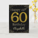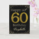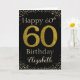 Feliz aniversário com simulação de brilho de ouro número 60 em preto sólido e emoldurado por diamantes falsos e rochas. Feliz aniversário e nome dos destinatários em letra esbranquiçada. Personalizar com nome ou mensagem.