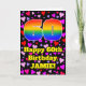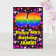 A frente deste design de cartão de saudação alegre e divertido, com tema de aniversário, apresenta um grande número de "60" tendo um padrão inspirado no gradiente do espectro arco-íris. Também apresenta a mensagem "Feliz 60º aniversário", e um nome personalizável. O fundo da frente apresenta um padrão de formas roxas, cor-de-rosa e vermelhas do coração. O dentro tem uma mensagem de saudação de aniversário personalizada, ou talvez pudesse ser apagado e deixado vazio se uma mensagem for escrita manualmente. Um bom e editável cartão de cumprimentos de aniversário como este pode ser uma maneira divertida de enviar alguns desejos de aniversário a alguém que comemora seu sexagésimo aniversário. [~Z0000551]