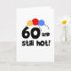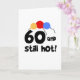 Balões das cores preliminares e texto preto que lê "60 e ainda quente!" em 60th t-shirt do aniversário, em canecas, em botões, em cartões, e na outra engrenagem do aniversário!