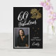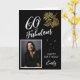 60 e Fabulosa Folhagem 60º Cartão com fotos de aniversário. Texto "60 e fabuloso", "Parabéns" em um roteiro de tendências. Adicione seu nome e foto. A carta tem uma bela folhagem dourada sobre fundo preto.