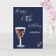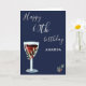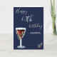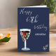60º Aniversário do Vinho Vermelho Rosa de Aquarela Marinho Cartão Azul de . 60º cartão de aniversário para ela ou para ele. O design tem um copo de vinho tinto de cor aquosa, rosas e galhos num fundo azul marinho. O texto está em branco e é totalmente personalizável - personalize-o com seu nome e qualquer idade e adicione seu dentro de mensagem ou apague.