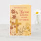 A Catholic design in gold, red, brown and yellow colors that offers a beautiful setting to wish a great 60th Jubilee to a Nun. This cross with flowers and leaves will make the sister's Anniversary even more special. This is the religious card you need.