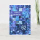62º cartão de aniversário. Deseje feliz aniversário com um cartão elegante. Os quadrados azuis e roxos se combinam para fazer um legal cartão de aniversário masculino. Deseje um feliz aniversário e sorria ao mesmo tempo.