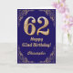 62º Aniversário, Marinho Azul e Dourado Quadro Luminoso. Para mais personalização, clique no botão "Personalizar" e use nossa ferramenta de design para modificar este modelo.