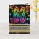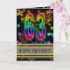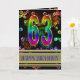 Uma explosão de cor com este incrível cartão de aniversário. Fogos de artifício e bolhas em cores do arco-íris, e um fundo de ouro fino para a saudação.