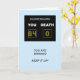 Um cartão de aniversário engraçado para dar um aniversário. Um placar mostra a idade como a pontuação vencedora contra a morte. As palavras "Você está vencendo, continue!" completam a cena.