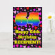 A frente desta divertida e alegre design de cartões de saudação com tema de aniversário apresenta um grande número de "64" com um padrão inspirado no gradiente do espectro arco-íris, juntamente com a mensagem "Feliz 64º aniversário", e um nome personalizado. O fundo da frente apresenta um padrão de formas cardíacas roxas, vermelhas e cor-de-rosa de vários tamanhos. O dentro tem uma mensagem de saudação de aniversário personalizada, ou talvez pudesse ser apagado e deixado vazio se uma mensagem fosse escrita manualmente. Um cartão de saudação de aniversário alegre e editável como este pode ser uma maneira divertida de entregar uma mensagem de cumprimentos de aniversário a alguém que está celebrando seu sexagésimo quarto aniversário. [~Z0000551]