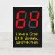A parte dianteira destas características de design do cartão do aniversário do bobo e do divertimento um grande número "64" tendo uma aparência vermelha do estilo da indicação digital de sete segmentos, junto com a mensagem "tem um grande 64th aniversário," e um nome customizável, em um fundo colorido preto. As características internas uma mensagem customizável do cumprimento do aniversário, ou poderiam talvez ser canceladas e sairiam do vazio se uma mensagem deve ser escrita à mão pelo contrário. Um cartão de aniversário customizável como este pôde ser uma maneira do divertimento de enviar a uma mensagem em comemoração de alguém sessenta quartos aniversários. [~Z0000386]