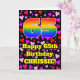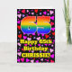 A frente deste design de cartão de saudação de aniversário colorida e divertida apresenta um grande número "65" tendo um padrão inspirado no gradiente do espectro arco-íris. Também apresenta a mensagem "Feliz 65º aniversário", e um nome editável. O fundo da frente apresenta um padrão de formas cardíacas com cores como vermelho, roxo e rosa. O dentro tem uma mensagem de saudação de aniversário personalizada, ou talvez pudesse ser apagado e deixado vazio se uma mensagem for escrita manualmente. Um cartaz de saudação de aniversário tão amável e personalizado como este poderia ser enviado para celebrar o sexagésimo quinto aniversário de alguém. [~Z0000551]
