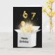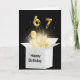 Balões Dourados e feixes de luz cintilantes brilham em uma caixa branca sobre fundo preto no 67º aniversário