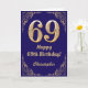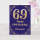 Cartão 69.º aniversário Marinho azul e Dourado quadro bri
