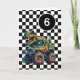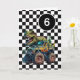 Um cartão de 6 de aniversário de monstro de dinossauros para rapazes. Possui um fundo de verificação preto-e-branco na frente com um lugar onde você pode personalizar facilmente a idade, se necessário. Um dinossauro Tyrannosaurus rex em cima de um caminhão monstro deliciará todos os fãs de dinossauros e caminhões monstros.