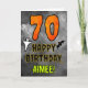 A frente deste design de cartões de saudação de aniversário temático e assustador do Hallowe'en apresenta um grande número "70". Também apresenta a mensagem "FELIZ ANIVERSÁRIO" e um nome editável. Há também representações de um fantasma e um morcego na frente. O dentro apresenta uma mensagem de saudação de aniversário personalizada, ou talvez possa ser apagado e deixado vazio se uma mensagem for escrita manualmente. Um cartão de aniversário personalizável como este pode ser uma maneira divertida de enviar uma mensagem em comemoração do 70º aniversário de alguém que também cai no Halloween (31 de outubro). [~Z0000547]