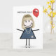 Cartão 70 Birthday Stick Figure Girl com balão vermelho