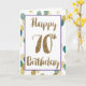 Cartão de 70 de aniversário de balões azuis e dourados para celebrar este marco de aniversário. A frente apresenta um design de ouro brilhante que diz Feliz aniversário de 70 com balões azuis, dourados e dourados ao fundo. A mensagem do cartão dentro pode ser personalizada se desejado. Este cartão de 70 para ela faria uma maravilhosa manutenção de cartas.