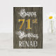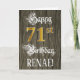 A frente deste design de ornamentado de saudação de aniversário de e rico apresenta a mensagem "Feliz 71ruas de aniversário", juntamente com um nome de destinatário personalizado. Parte da mensagem está no texto elaborado em estilo script, o grande número "71ruas" apresenta um padrão de aparência imitado/falsa inspirado em ouro, e o fundo tem um padrão falsa/imitado inspirado em madeira. O dentro tem uma mensagem de saudação de aniversário personalizada, ou talvez possa ser apagado e deixado vazio se uma mensagem for escrita manualmente. Um cartão de cumprimentos de aniversário formal e personalizado como este pode ser usado para reconhecer o aniversário de setenta e um anos de alguém. [~Z0000561]