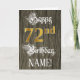 A frente deste ornamentado e elaborado design de cartão de saudação temático de aniversário apresenta a mensagem "Feliz 72º Aniversário", além de um nome de destinatário personalizado. Parte da mensagem está no texto elegante estilo script, o grande número "72º" apresenta um padrão de aparência imitado/falsa inspirado em ouro, e o fundo tem um padrão de imitação/falsa inspirado em madeira. O dentro tem uma mensagem de saudação de aniversário personalizada, ou talvez possa ser apagado e deixado vazio se uma mensagem for escrita manualmente. Um cartão de cumprimentos de aniversário formal e editável como este pode ser usado para celebrar o aniversário de setenta e dois anos de alguém. [~Z0000561]