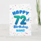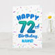 Cartão 72nd Birthday, Balloon Number, Customizable Name