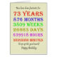 O 73º cartão de aniversário, contando os anos, dias, meses, horas e minutos. Um cartão para dar pausa para pensar! Foram tidos em conta anos saltos!