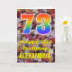 A frente deste design de cartões de saudação de aniversário coloridos, rústicos e inspirados na natureza apresenta um grande número "73" com um padrão inspirado no espectro do arco-íris. Também apresenta a mensagem "Feliz 73º aniversário", e um nome personalizado. A frente apresenta um pano de fundo que mostra folhas caídas rústicas no outono. O dentro apresenta uma mensagem de saudação de aniversário personalizada, ou talvez possa ser apagado e deixado o vazio se uma mensagem for escrita manualmente. Um cartão de aniversário personalizado como este pode ser uma maneira divertida de enviar desejos de aniversário a alguém que comemora seus setenta e três anos. [~Z0000384]