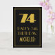 A frente deste design de cartão de aniversário estilo retrô apresenta um grande número "74" inspirado no estilo art déco, a mensagem "FELIZ ANIVERSÁRIO DE 74 ANOS", um nome personalizado e um padrão de borda composto por linhas. A frente também apresenta um fundo preto. O interior apresenta uma mensagem de aniversário personalizável ou pode ser deixado em branco se uma mensagem for escrita à mão. Um cartão de aniversário personalizável como este pode ser uma maneira divertida de enviar votos de feliz aniversário para alguém que está celebrando seu septuagésimo quarto aniversário.