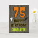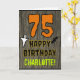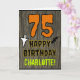 A frente deste assustador e assustador design de cartão de saudação temático de aniversário de Halloween apresenta um grande número "75", juntamente com a mensagem "HAPPY BIRTHDAY", e um nome personalizável. Há também representações de um morcego e de um fantasma na frente. O dentro apresenta uma mensagem de saudação de aniversário editável, ou talvez pudesse ser apagado e deixado o vazio se uma mensagem fosse escrita manualmente. Um cartão de aniversário personalizável como este pode ser uma maneira divertida de reconhecer o setenta e cinco anos de alguém que também cai no dia 31 de outubro (Halloween). [~Z0000410]