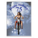 Cartão 75 anos com uma moça de bicicleta
