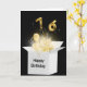 Balões Dourados e feixes de luz cintilantes brilham em uma caixa branca sobre fundo preto no 76º aniversário