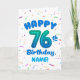 Cartão 76th Birthday, Balloon Number, Customizable Name