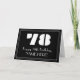 Este design de cartão de saudação de aniversário de vintage inspirado no estilo '20s itinerante apresenta um grande estilo de deco de arte inspirado no número "78", a mensagem "Feliz 78.º Aniversário", um nome personalizado e um padrão de borda composto por linhas finas na frente. O fundo da frente é preto colorido. O dentro tem uma mensagem de saudação de aniversário personalizada, ou talvez pudesse ser apagado e deixado vazio se uma mensagem for escrita manualmente. Um cartão de saudação de aniversário personalizável como este pode ser usado para celebrar o 78º aniversário de alguém. [~Z0000486]