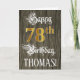 A frente deste ornamentado e elegante design de cartões de aniversário apresenta a mensagem "Feliz 78º aniversário" e um nome de destinatário personalizado. Parte da mensagem está no texto formal em estilo de script. O grande número "78º" apresenta um padrão de aparência falsa/imitado inspirado em ouro. O fundo tem um padrão falsa/imitado de grãos de madeira. O dentro tem uma mensagem de saudação de aniversário personalizada, ou talvez possa ser apagado e deixado vazio se uma mensagem for escrita manualmente. Um elaborado e personalizado cartão de cumprimentos de aniversário como este pode ser enviado para comemorar o aniversário de setenta e oito anos de alguém. [~Z0000561]