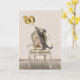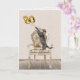 Cinza de gato com balões de folha de ouro numa cadeira antiquada para 80.
