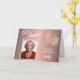 80 e Fabuloso 80 de Folhagem Cartão com fotos de Aniversário. Texto "80 e fabuloso", "Parabéns", nome e fotografia. A placa tem uma bela folhagem no canto em um fundo rosa metálico dourado.