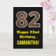 Este design de cartão de saudação de aniversário rústico e divertido apresenta um grande número de "82" com um padrão de estilo inspirado em grãos de madeira de imitação na frente. A frente também apresenta a mensagem de saudação de aniversário "Feliz 82º Aniversário", e um nome de destinatário editável. O dentro apresenta uma mensagem de saudação de aniversário editável, ou talvez pudesse ser apagado e deixado o vazio se uma mensagem fosse escrita manualmente. Um cartão de aniversário personalizável como este pode ser uma maneira divertida de enviar desejos de aniversário a alguém que comemora seu oitenta e segundo aniversário. [~Z0000433]