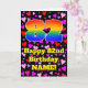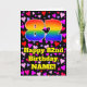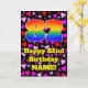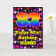A frente desta divertida e colorida carta de saudação do tema de aniversário apresenta um grande número "82" com um padrão inspirado no gradiente do espectro arco-íris, juntamente com a mensagem "Feliz 82º Aniversário", e um nome personalizável. O fundo da frente apresenta um padrão de formas cardíacas rosa, vermelha e roxa. O dentro tem uma mensagem de saudação de aniversário personalizada, ou talvez pudesse ser apagado e deixado vazio se uma mensagem fosse escrita manualmente. Um cartão de saudação de aniversário divertido e personalizável como este pode ser usado para celebrar o oitenta e segundo aniversário de alguém. [~Z0000551]