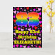 A frente desta alegre e alegre design do cartão de saudação de aniversário apresenta um grande número "83" com um padrão inspirado no gradiente do espectro arco-íris, juntamente com a mensagem "Feliz 83º Aniversário", e um nome personalizado. O fundo da frente apresenta um padrão de formas cardíacas roxas, vermelhas e cor-de-rosa de vários tamanhos. O dentro tem uma mensagem de saudação de aniversário personalizável, ou talvez pudesse ser apagado e deixado o vazio se uma mensagem fosse escrita manualmente. Um cartão de saudação de aniversário otimizado e personalizado como este pode ser enviado para comemorar o oitenta e terceiro aniversário de alguém. [~Z0000551]